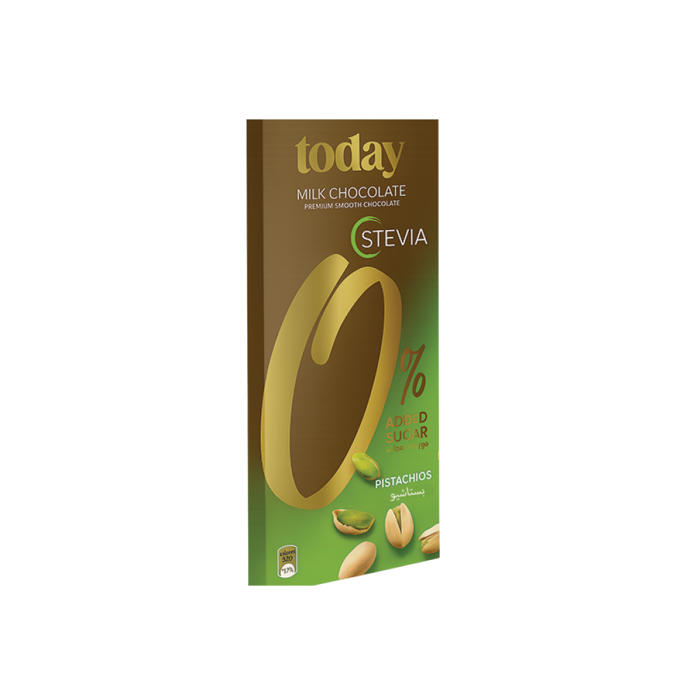 Today Stevia شوكولاته حليب بالفستق الحلبي بدون سكر مضاف